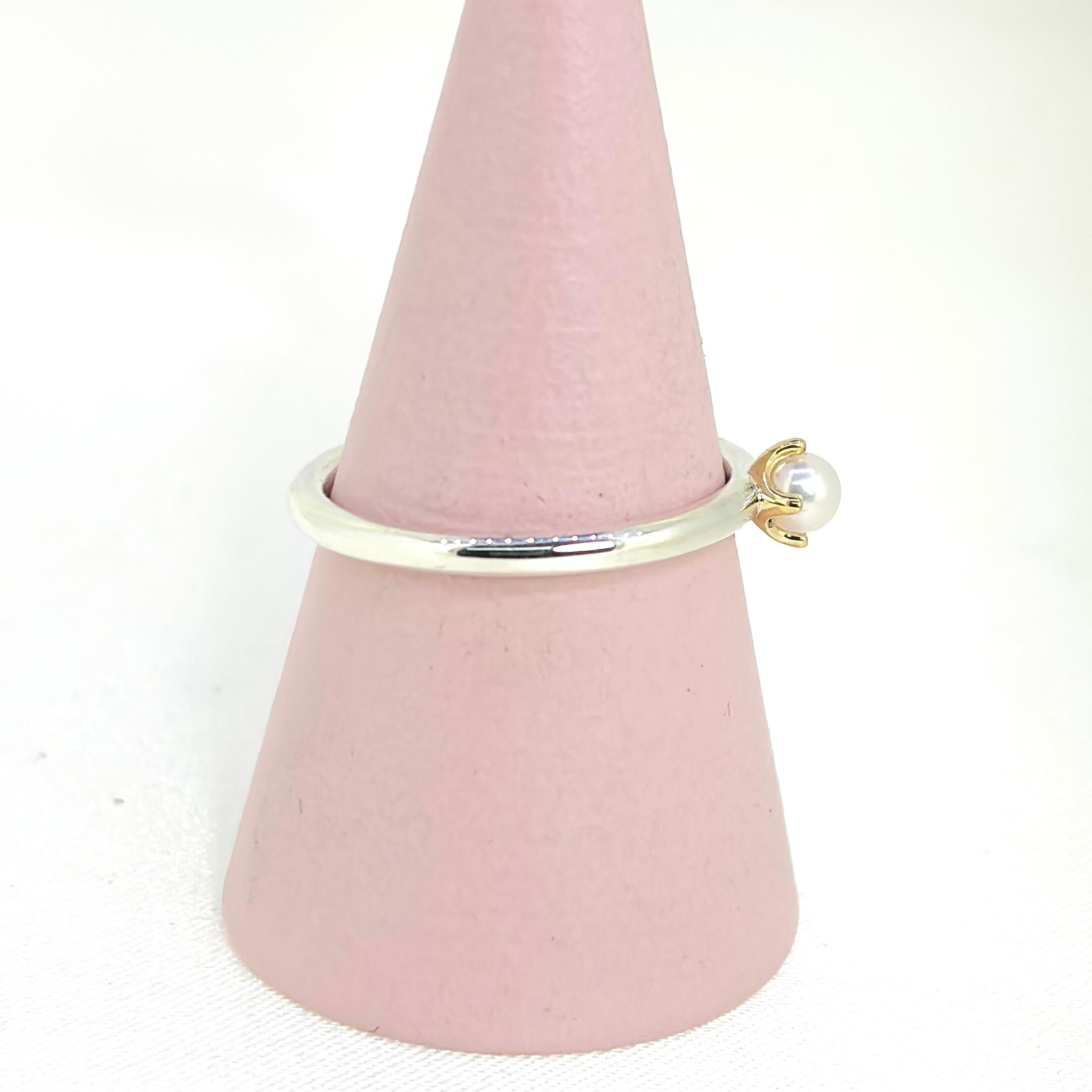 夏を感じる洗練されたデザインのアコヤパールリングです。SV925とK18のコンビネーションが、上品さと高級感を醸し出します。特に爪だけがK18で仕上げられており、パールの美しさを引き立てる絶妙なバランスを実現しています。
