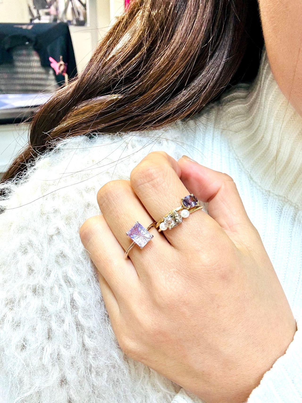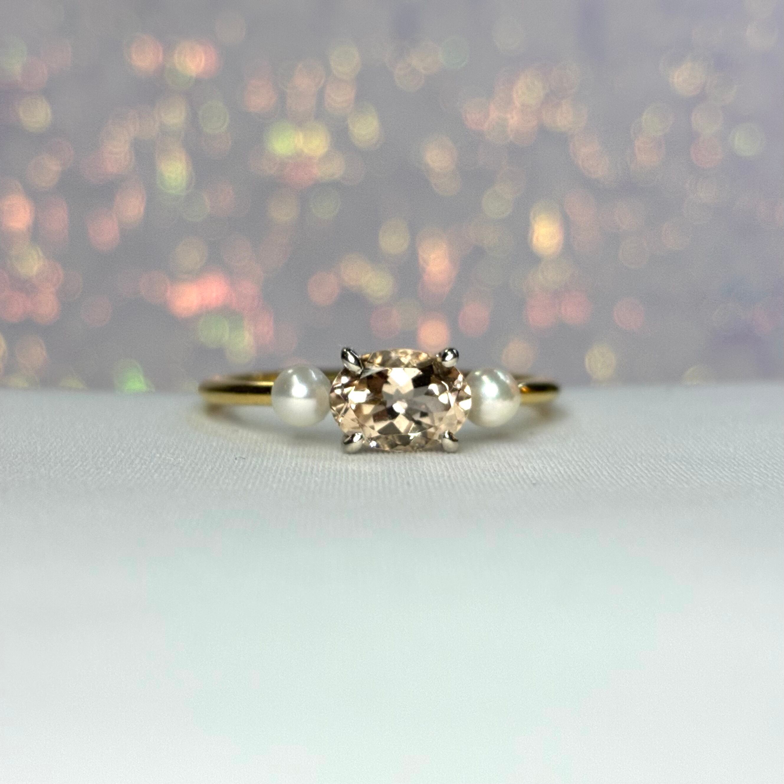 このリングは、職人の手によって一つ一つ丹念に創り上げられました。素材の選定から石のセッティングまで、厳しい品質チェックを経てお客様にお届けしています。豊かな自然の中で育まれたパールや、厳選されたモルガナイトは、艶やかさと上品さを宿しています。それらの石を一つのリングに組み合わせることで、唯一無二の輝きを放つジュエリーが誕生しました。